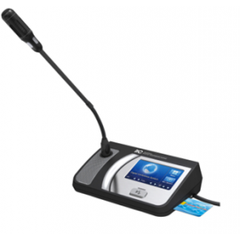 Microphone delegue Conforme à IEC 60914. Sélecteur de canal avec affichage du numéro de cana Sortie casque avec contrôle du volumeTS-0203Caractéristiques Ce microphone d'unité adopte un taux d'échantillonnage de 48 KHZ, supérieur à la qualité sonore du CD, et rend la voix claire et lumineuse. Avec traitement audio DSP interne et pas de son bas..